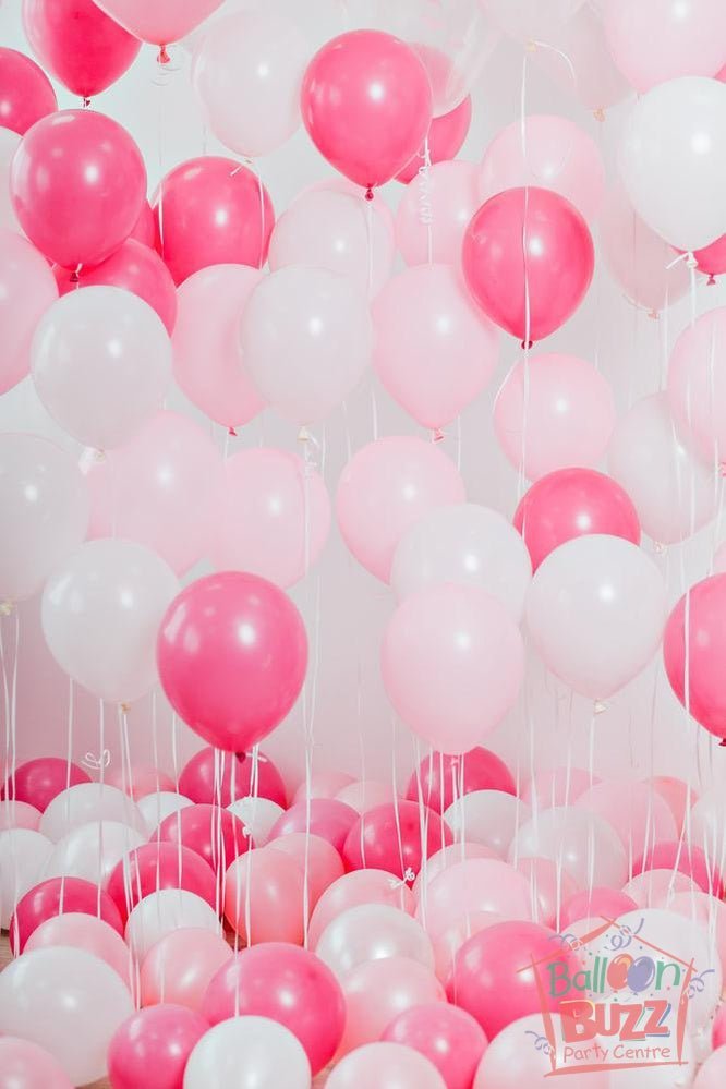 Pink, White And Metallic Rose Balloons For Backdrop With Helium And Air Balloons