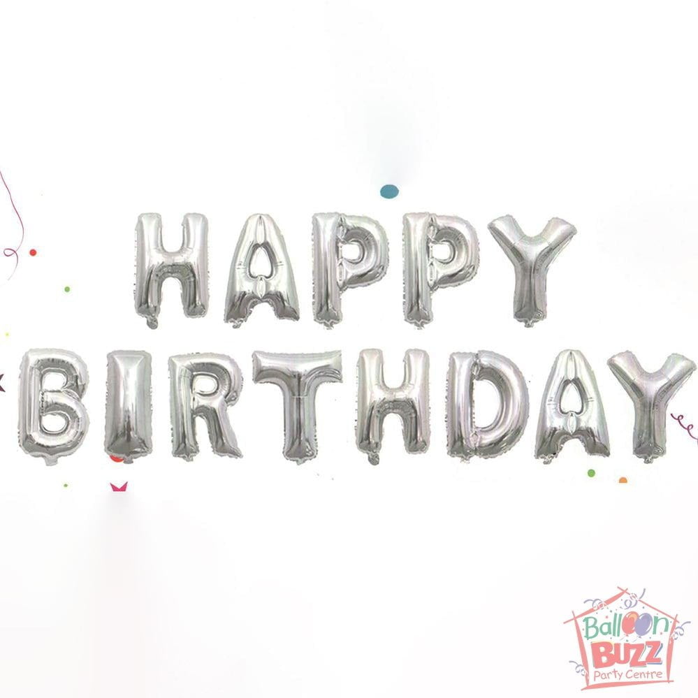 Happy Birthday Set – Silver Foil Air-Filled – 16-inch