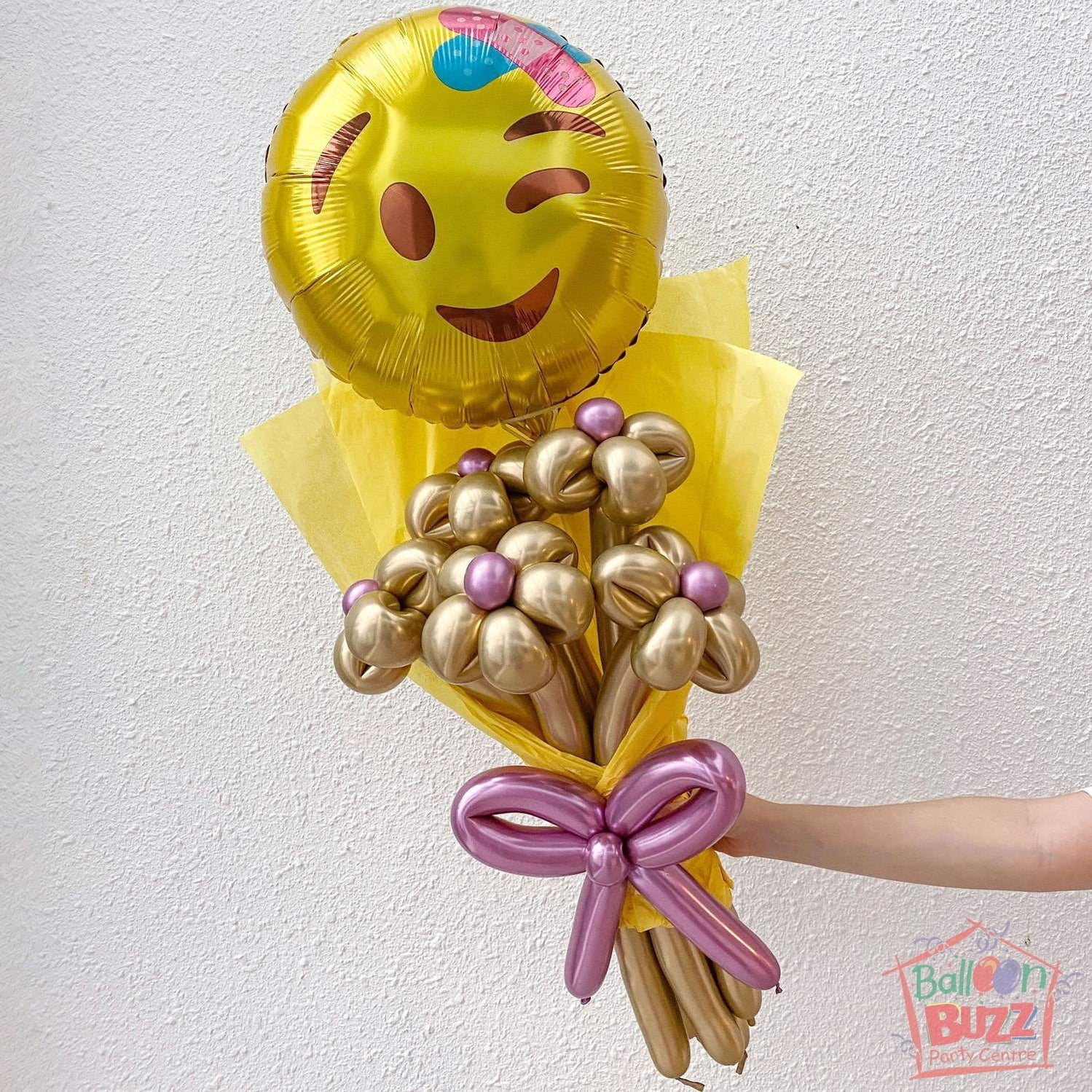 18-inch Get Well Soon Emoji with Chrome Balloon Flower Bouquet